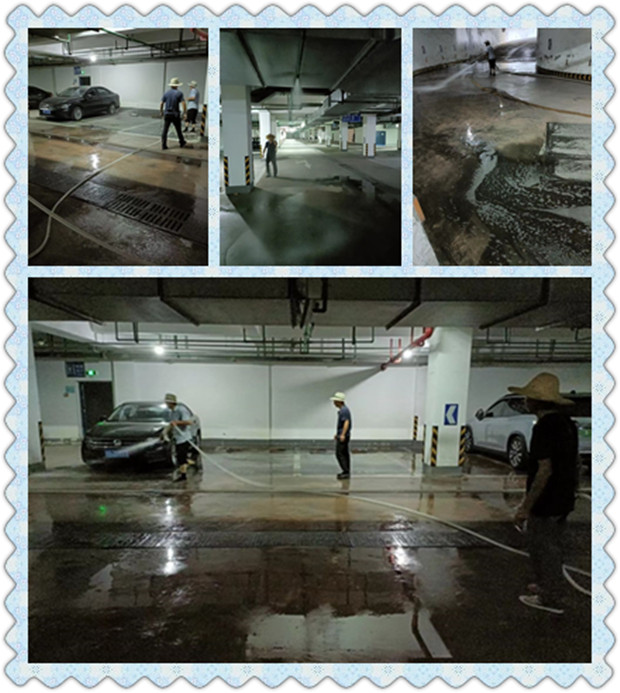 地下车库清洗大扫除,北辰雅苑在行动