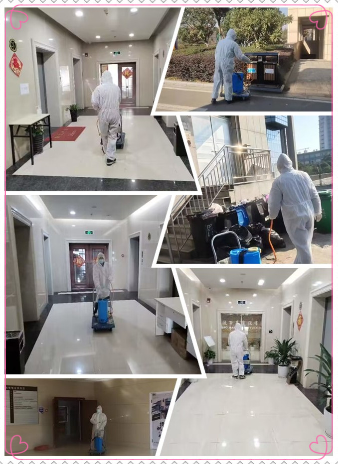 全面做好疫情期间的环境卫生清洁工作,有效切断病毒的传播途径。为确保业主生命安全和身体健康,合力大厦高度重视疫情防控期间大厦环境消杀工作,每日消杀人员身穿防护服,推着消毒机和消毒水,采用“地毯式”的消杀方式,严格按照消杀规范操作流程,配药比例对大厦大堂进行消杀工作。