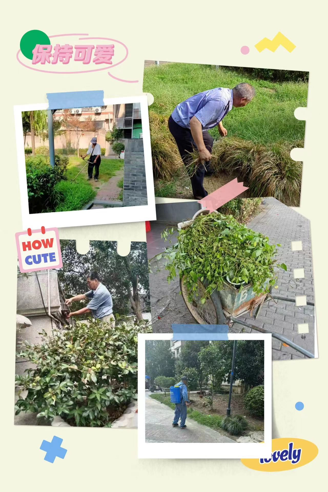 通过绿化养护人员的辛勤劳动,对小区的绿化带花草、观木、乔木、篱笆、草坪等进行全面整体修剪、除草、喷药。迖到了小区绿化美化效果,提升了小区的整体形象,为小区业主创造了更加整洁,更加舒适,更加美观的生活环境和氛围。