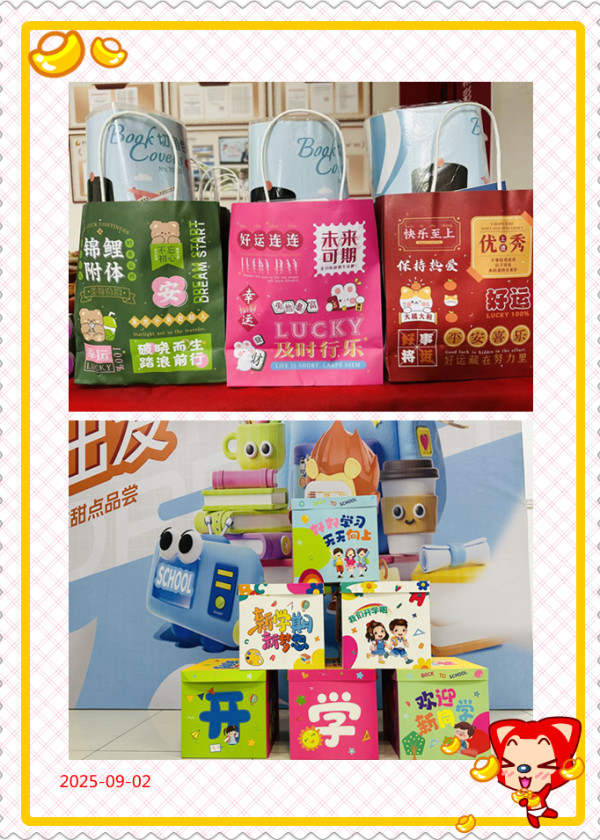 高年级的哥哥姐姐们也有专属惊喜。物业备好的书皮,成了亲子互动的“桥梁”。家长们耐心教着孩子如何对齐、裁剪,孩子们踮着脚尖认真配合,一张张书皮慢慢裹住课本,也裹住了一段段温馨的亲子时光。“妈妈,你看我包得好不好?”“爸爸,这个角要怎么折呀?”叽叽喳喳的童声里,满是成长的欢喜。