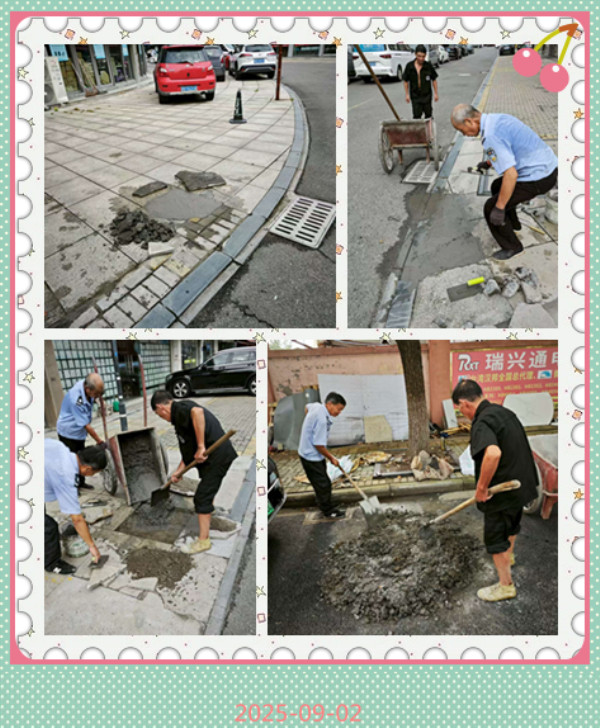 师傅们先清理路面杂物与积水,对凹陷处填充夯实,再铺设新水泥路面。尽管天气炎热,师傅们仍专注作业,确保每一步骤精准到位,经紧张施工,破损路面恢复平整,业主出行安全与便利得到保障,获业主纷纷点赞,称感受到物业实实在在的关怀。从发现问题到解决问题,盛事达物业高效响应、快速处置,以实际行动践行服务承诺,这一举措不仅消除了安全隐患,也彰显了物业企业对公共设施维护的重视,为业主营造安全、舒适的居住环境添砖加瓦。后续,各项目部将持续加强巡查力度,主动发现并及时解决设施设备问题,守护业主日常出行安全。