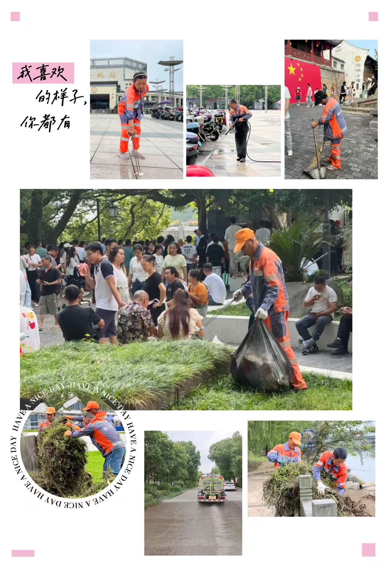 在余姚阳明古镇景区,游客络绎不绝,或驻足拍照,或闲坐休憩。保洁员张姐认真清扫着石板路上的落叶与垃圾,另一位环卫工赵哥清理花坛边的餐巾纸和水瓶等废弃物。周围游人无人注意到“城市美容师”的辛劳身影,而他们专注而沉稳的动作,成为节日里一道温暖而动人的风景线。赵哥从事环卫工作多年,他说:“节假日人越多,我们的责任越重。看到街道干净,大家开心过节,再累也值得。”振兴物业对阳明古镇景区,在节假日期间也调配了多位环卫工人参与景区的保洁工作。