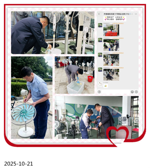 据统计,本次活动共吸引163户业主参与,清洗电风扇331台。看着洁净如新的风扇,业主们笑容满面,不住为物业的周到服务点赞。此次便民服务不仅切实解决了业主难题,更拉近了物业与业主的距离,用细致关怀温暖了整个社区,为即将到来的干燥季节和来年的清爽夏日做好了充分准备。