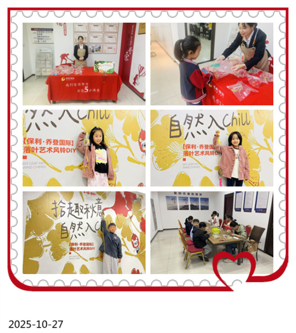 两个小时的时光在指尖流转,活动落幕时,业主们纷纷举起自己的作品合影,脸上满是成就感。手中的风铃不仅是一件手工制品,更藏着对秋天的热爱,对邻里相聚的温暖记忆。乔登国际花园物业服务中心以一片落叶为媒,不仅让业主们感受到了秋日的美好,更拉近了彼此的距离,让社区的温情在秋风与铃声中静静流淌。