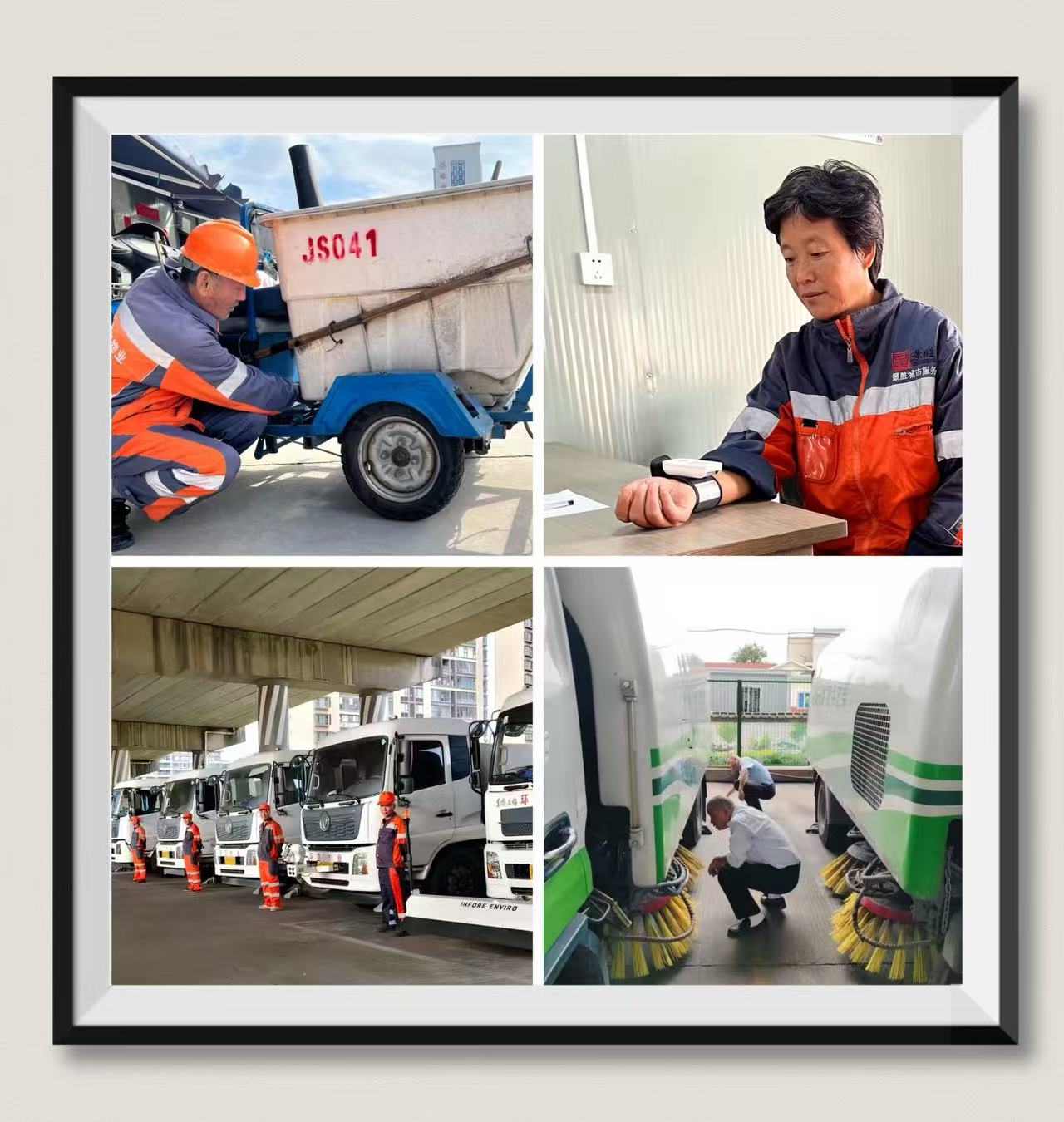 无论是道路保洁车,还是道路员工,安全行驶出行都是底线!道路保洁车队制定车辆月度维保计划,重点检查刹车、灯光、轮胎这些关键部件,保养记录也会妥善留存;每天出车前,驾驶员得先自己检查车况,发现问题马上报修,坚决不让车辆“带病上路”。同时组织驾驶员学习交通法规、应急避险技巧和恶劣天气驾驶注意事项;定期开展警示教育,进一步强化安全驾驶意识。