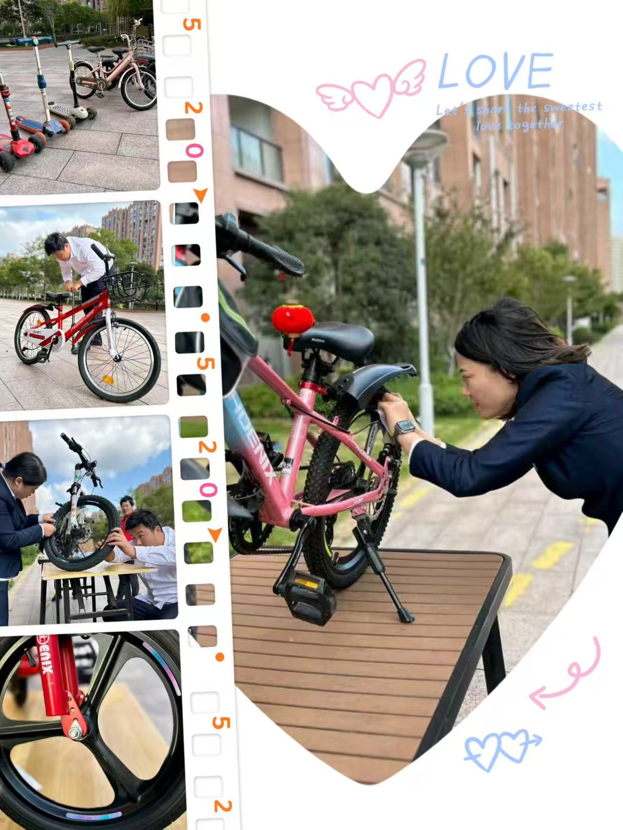 除了张贴反光车贴,现场还贴心提供童车免费检修服务。物业工作人员自带打气筒、扳手等工具,认真检查每一辆童车的轮胎气压、刹车灵敏度 ——“小朋友的车胎有点瘪了,我帮你打足气,骑起来更稳”。同时向小业主们普及晚间骑行安全知识:“晚上骑童车要慢一些,不能追着小伙伴跑哦!”“遇到爷爷奶奶散步,要记得提前减速避让~”。服务中心配置多件儿童反光背心,供有需要的小业主夜间骑行穿戴,提高安全意识,降低骑行风险。