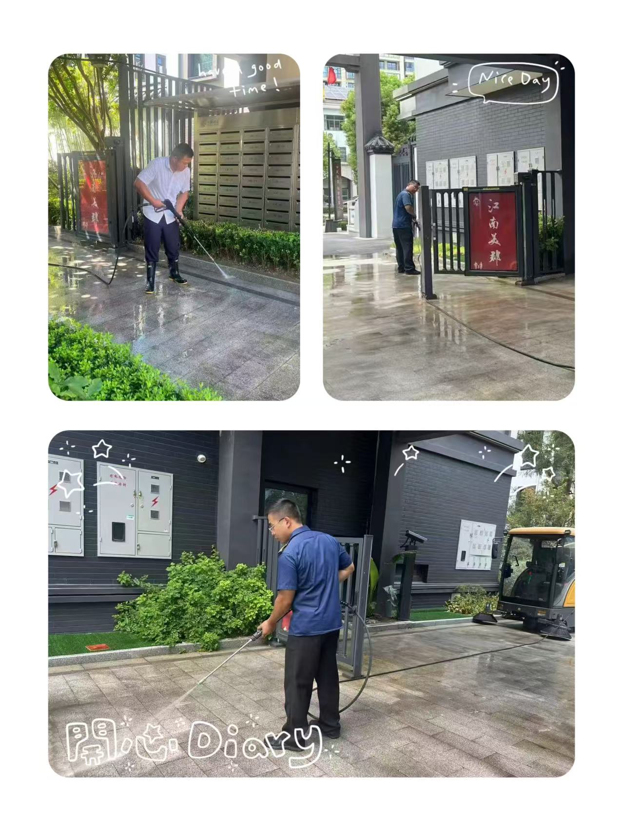 出入口,是家园的“脸面”,也是业主每日出行的必经之路。为持续提升小区环境品质,给业主家人们带来更洁净、舒适的居住体验,江南美郡物业服务中心将传统的保洁方式与现代设备相结合,便可以高效率在日常开展小区各出入口地面的深度清洁工作,用行动刷新家园“颜值”。