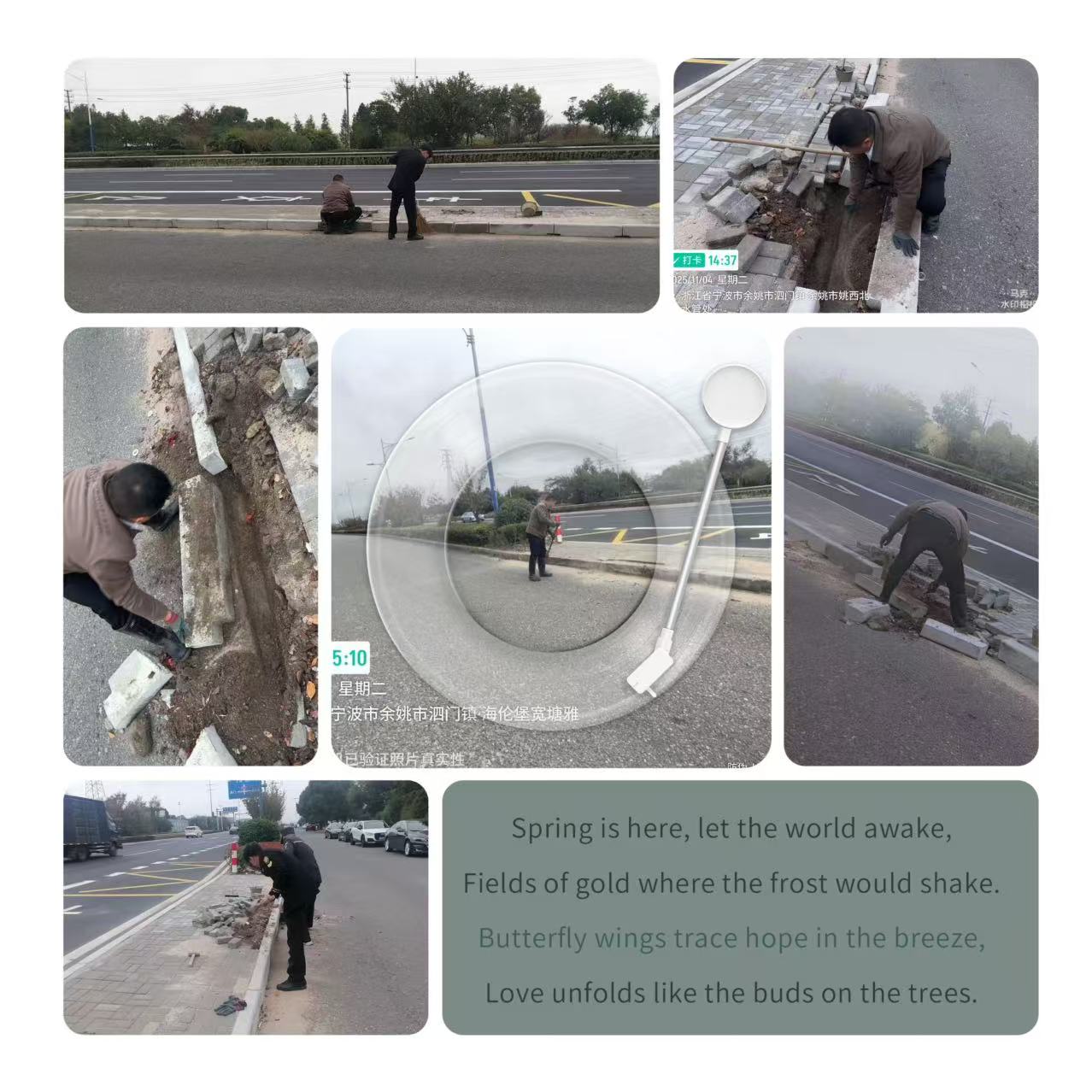 海伦堡物业工作人员在巡查中发现小区南门紧挨着公路的路牙石出现翻倒、塌陷不平整等情况,不仅影响市容市貌,也给行人出行带来了安全隐患。