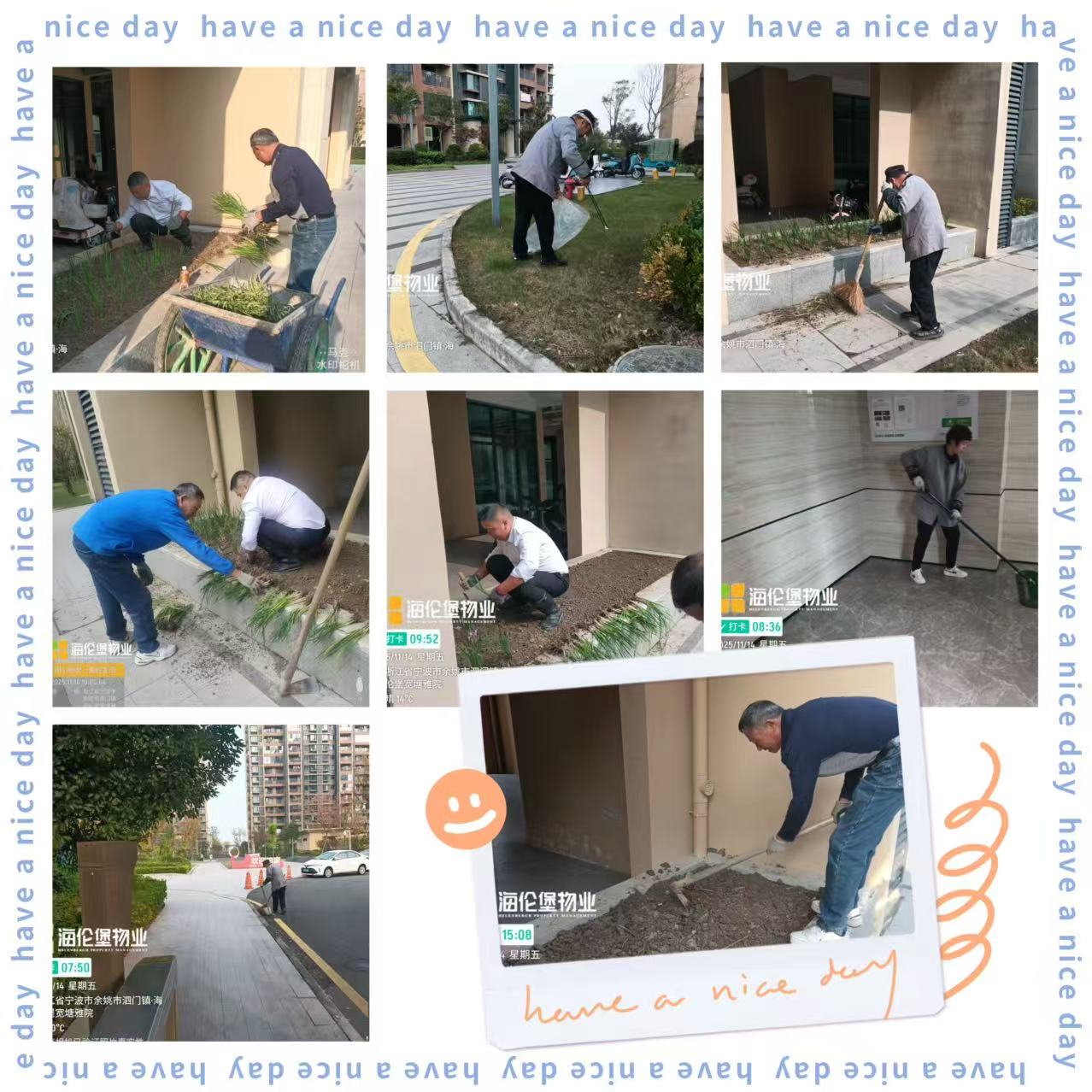 各部门积极抽调人员,针对小区内苗木稀疏、长势不良的区域进行了补种。大家分工合作对土地进行翻土、补种、浇水等,确保了小区绿化品质的整体提升。