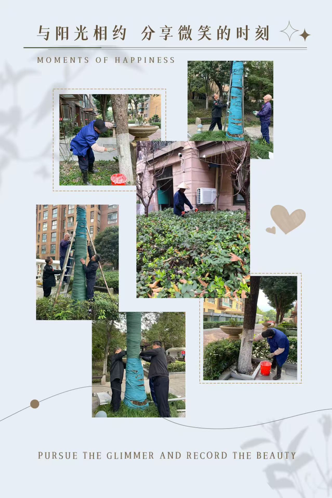 一是实施冬季树木修剪工作。天鹅湾对小区内的乔灌木进行修剪,剪去病虫枝、过密枝、枯死枝等;对存在遮挡的树木进行合理修剪,保障业主、车辆安全出行。