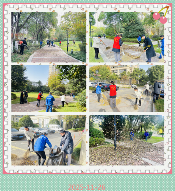 11月25日上午8:30,乔登国际花园物业服务中心的工作人员准时集结,一场针对秋季落叶的专项清扫整治工作正式拉开序幕。作为小区每月固定的大扫除日,此次清扫恰逢秋冬交替之际,面对随风飘落、堆积各处的落叶,物业团队提前规划路线,全力为业主打造整洁舒适的居住环境。