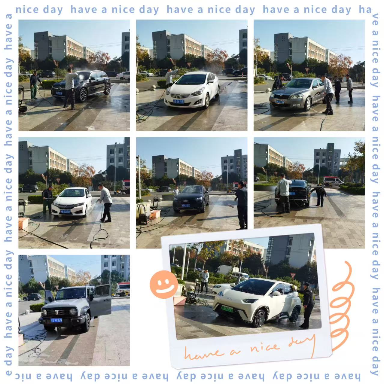 高压水枪的“滋滋”声里,物业人员的身影来回忙碌,冲掉车身上的浮尘,擦净玻璃上的水渍,连轮毂的缝隙都仔细打理。黑的、白的、银的,轿车、SUV、新能源车……一辆辆车子褪去灰蒙,在阳光下亮出干净的底色。