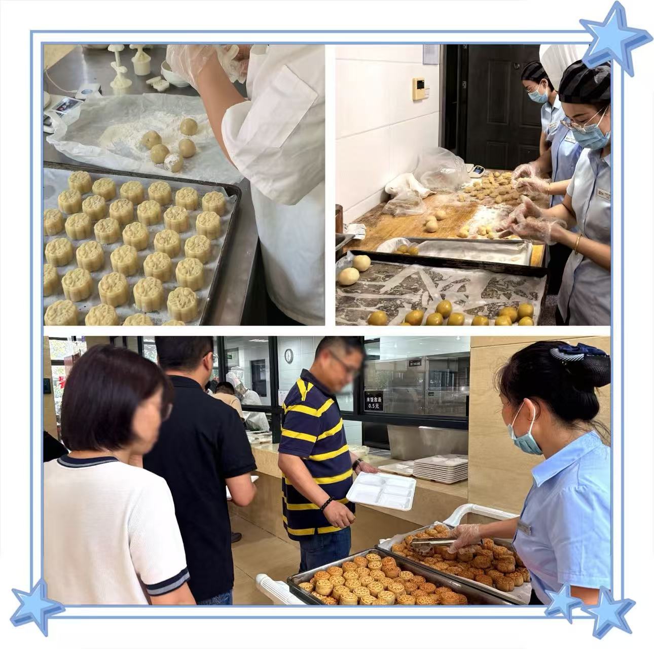 食堂也同步增添节日氛围,师傅们提前采购面粉、馅料,亲手揉面、包馅、压模,一个个造型精致的月饼在掌心成型,经过烘烤后香气四溢,让香甜滋味伴着节日祝福传递到每个人手中。