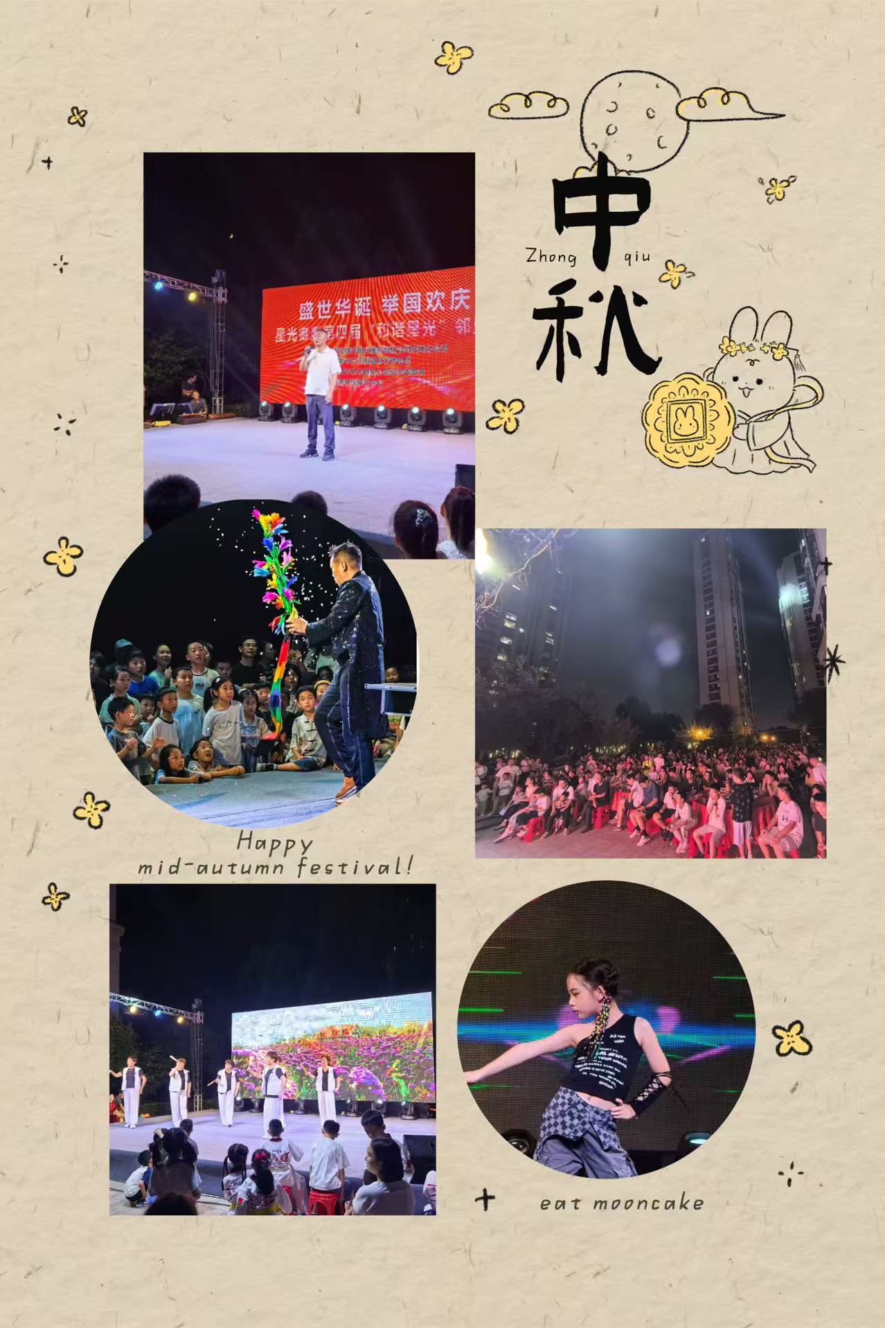 明月寄情,家国同庆。在2025年国庆、中秋双节之际,为丰富业主精神文化生活,传承中华传统节日优秀民俗文化,增强小区业主的凝聚力与归属感,营造“邻里一家亲”的双节氛围,绿升物业于余姚星光御墅小区开展中秋联欢晚会——第四届“和谐星光”邻里节活动。