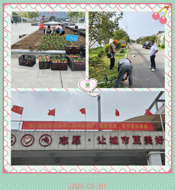 在2025年中秋、国庆双节来临之际,为营造安全、祥和、整洁、喜庆的节日氛围,保障广大业主度过一个平安愉快的假期,振兴物业公司精心组织、周密部署,于近期全面开展了“迎中秋、庆国庆”专项工作。公司领导班子带头分组深入各服务项目,开展全方位安全检查,并同步推进环境美化与节日氛围布置,以实际行动践行服务承诺,提升社区品质。