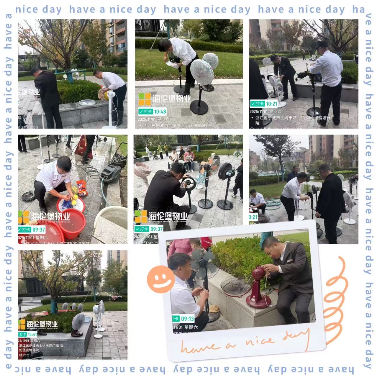 海伦堡物业:风扇清洗暖人心,秋风送爽谢温情